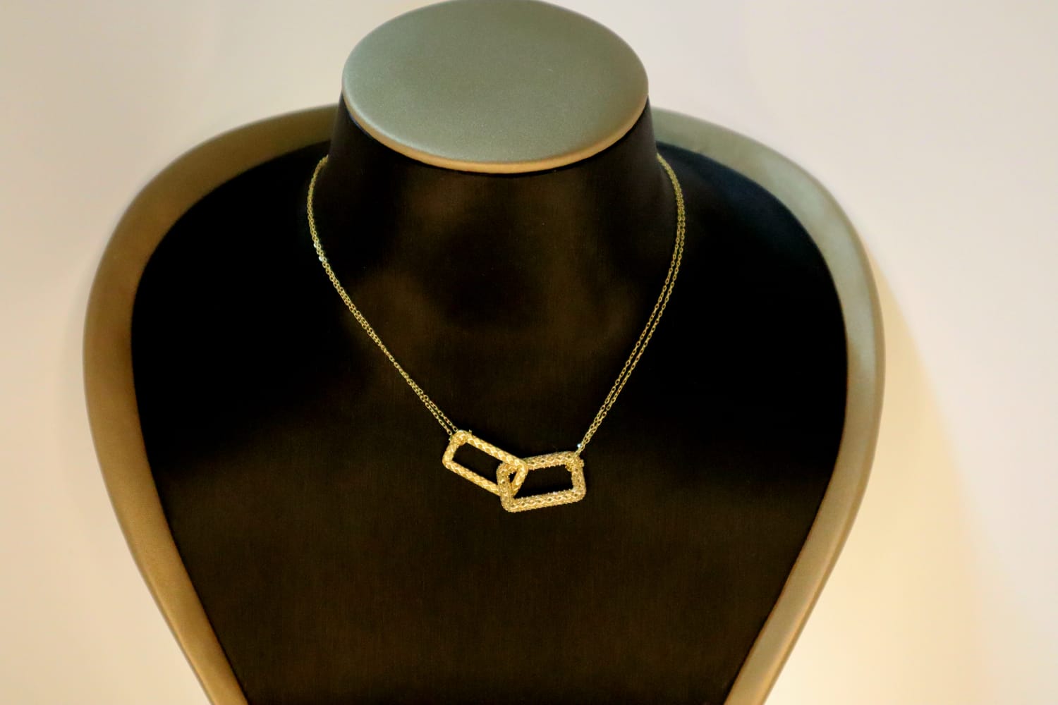 The "Elegance Duo Necklace" is a stunning piece of jewelry designed for refined and elegant young women who appreciate unique, handcrafted items. Crafted from pure 18ct gold, this necklace exudes luxury and sophistication.